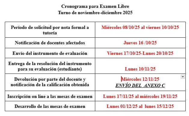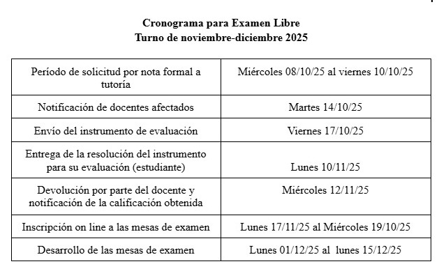 Mesas de exámenes libres – noviembre-diciembre 2025